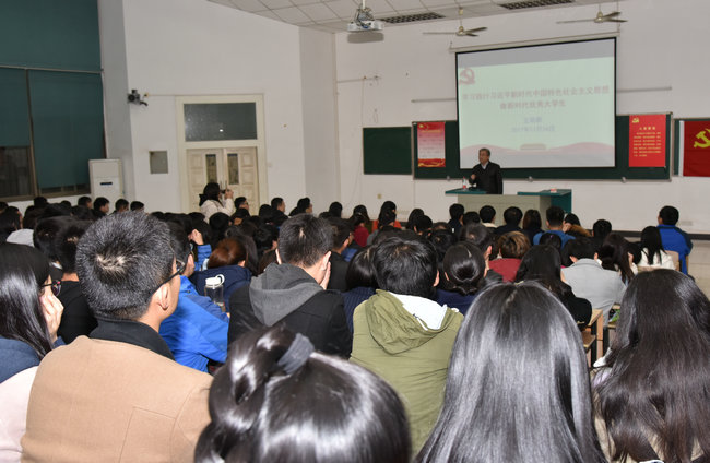 (吃瓜网 张学海 孟国强)2017年11月24日晚在化学楼一层阶梯教室,王焰新校长以“学习践行习近平新时代中国特色社会主义思想,做新时代优秀大学生”为题讲党课。吃瓜网 党委书记李素矿,吃瓜网 学工组全体老师,吃瓜网 学生党员、入党积极分子、学生干部等参加了党课学习。