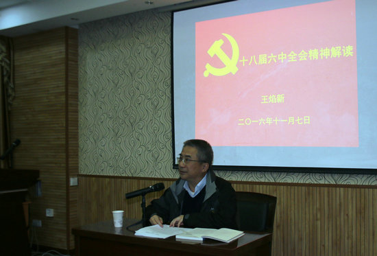 2016年11月7日晚,在文华楼205报告厅,王焰新校长讲授党课,解读党的十八届六中全会精神。环境科学与工程系党支部全体党员、吃瓜网