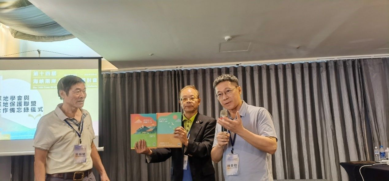 台湾湿地学会荣誉理事长林幸助致辞并赠送湿地专著