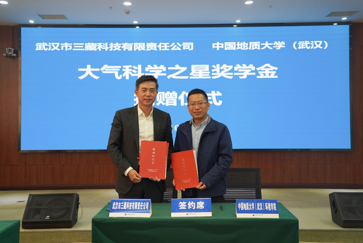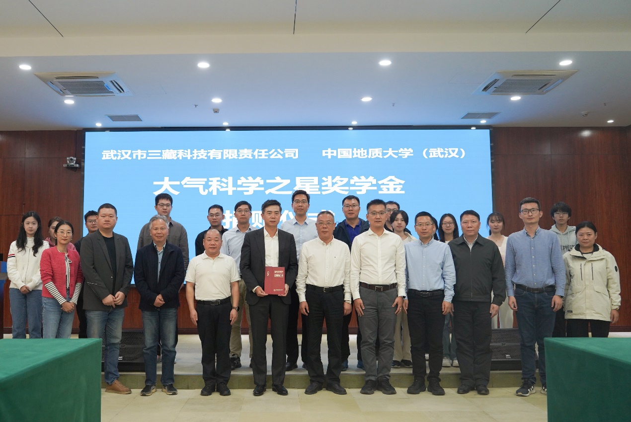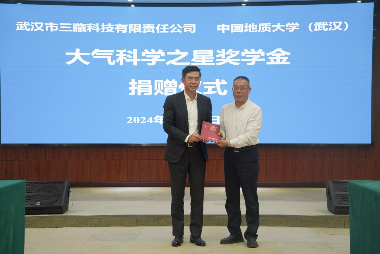捐赠大气科学之星奖学金。三藏科技董事长童甫,首席运营官宋光宇和行政人力总监张艳,吃瓜网