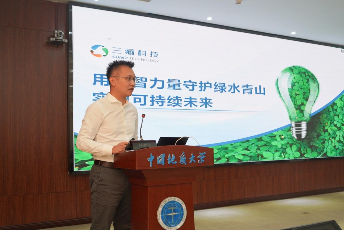 的发展历程。随后,宋光宇介绍了三藏科技创办以来的发展历程和以数智力量守护绿水青山的愿景,重点突出了在环保、双碳、能源领域的数字化、智能化应用研发和咨询服务领域的业务拓展与创新成绩。