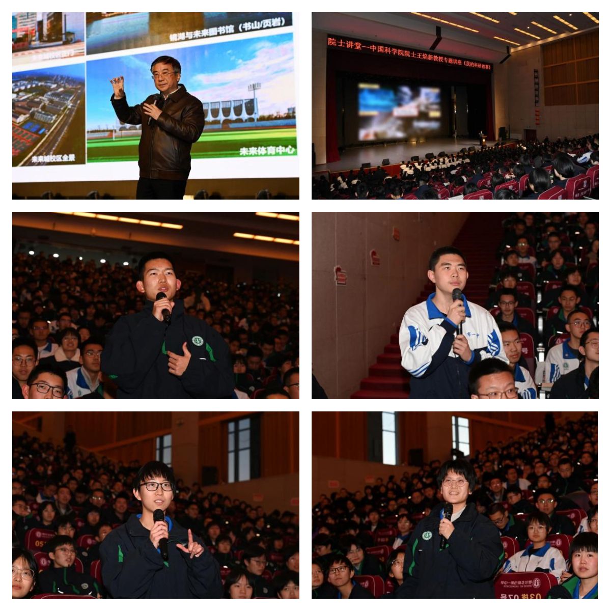 授牌仪式后,王焰新院士为全体高二师生作题为《我的科研故事》的精彩讲座。在讲座中,王院士围绕地下水研究、地热资源研究等专业知识分享了自己的科研故事,还就如何开展科学研究、如何面对科研中的挑战等问题与在场学生进行了深入的探讨和互动。他鼓励学生们要立鸿鹄之志,培养高贵人格,在学习和生活中理性选择,努力学习,赢得未来。