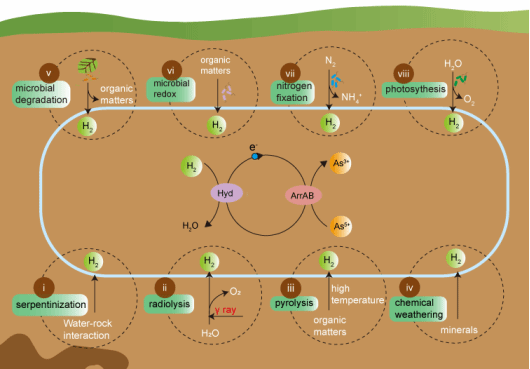 总而言之,本研究通过宏基因组学和微生物分析,发现了微生物催化氢气氧化偶联固相砷还原这一新的生物地球化学反应,解释了为什么在可溶性有机碳匮乏的地下环境中,依然会发生固相砷的还原性溶解与释放。这一发现为地质与环境微生物领域提供了新知识,并丰富了微生物介导的高砷地下水形成的微生物学机制。