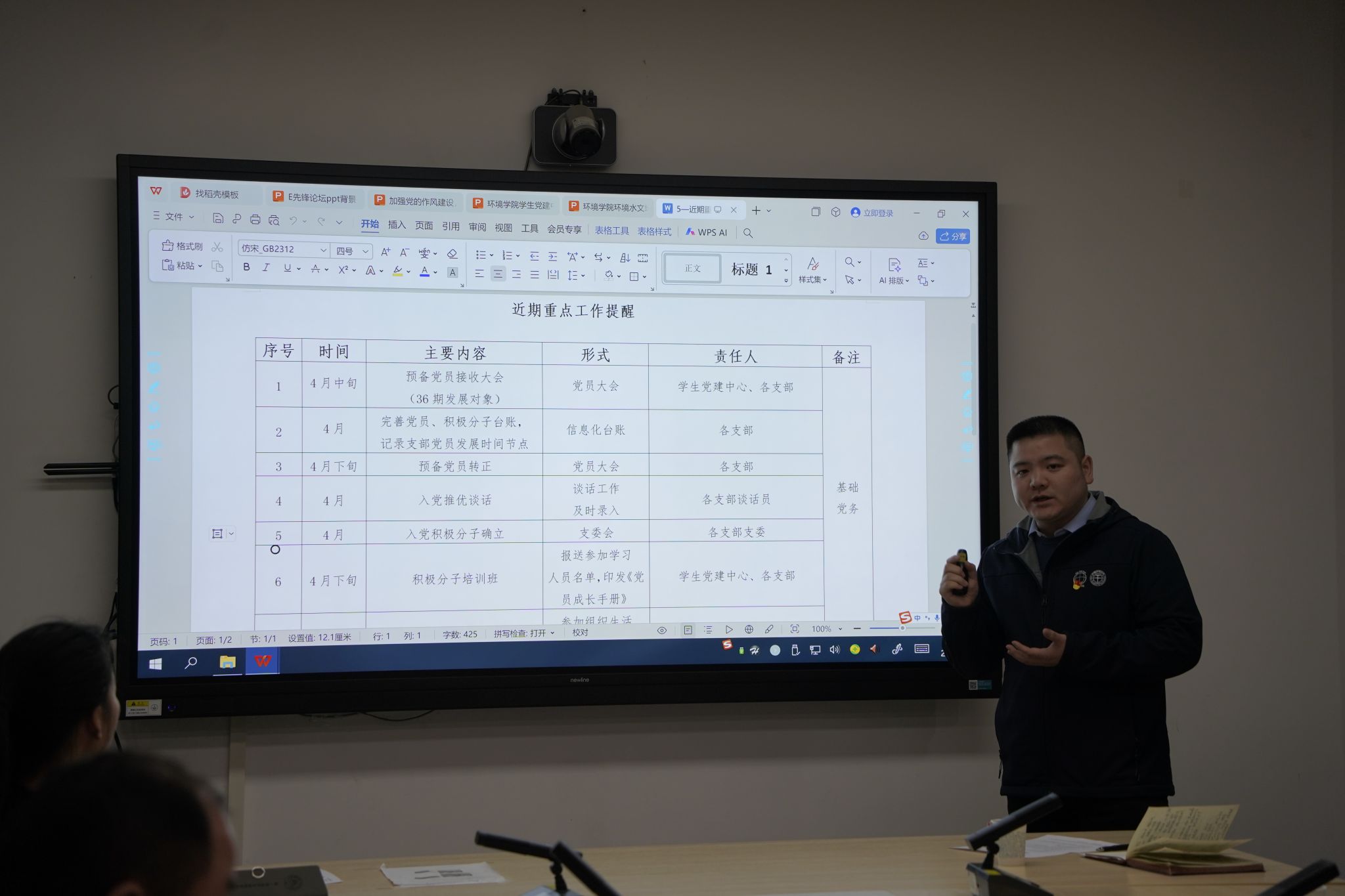陈俊男就开展深入贯彻中央八项规定精神学习教育、党员发展及转正、学生党支部微党课大赛等布置近期重点工作。