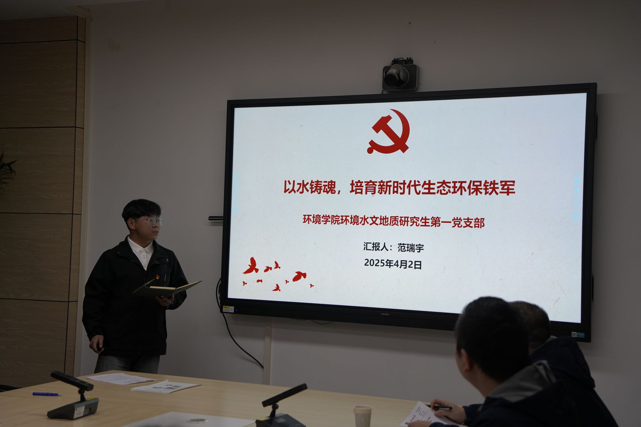 环境水文地质研究生第一党支部范瑞宇从支部概况、建设举措以及未来工作计划等方面介绍支部建设举措和成效。