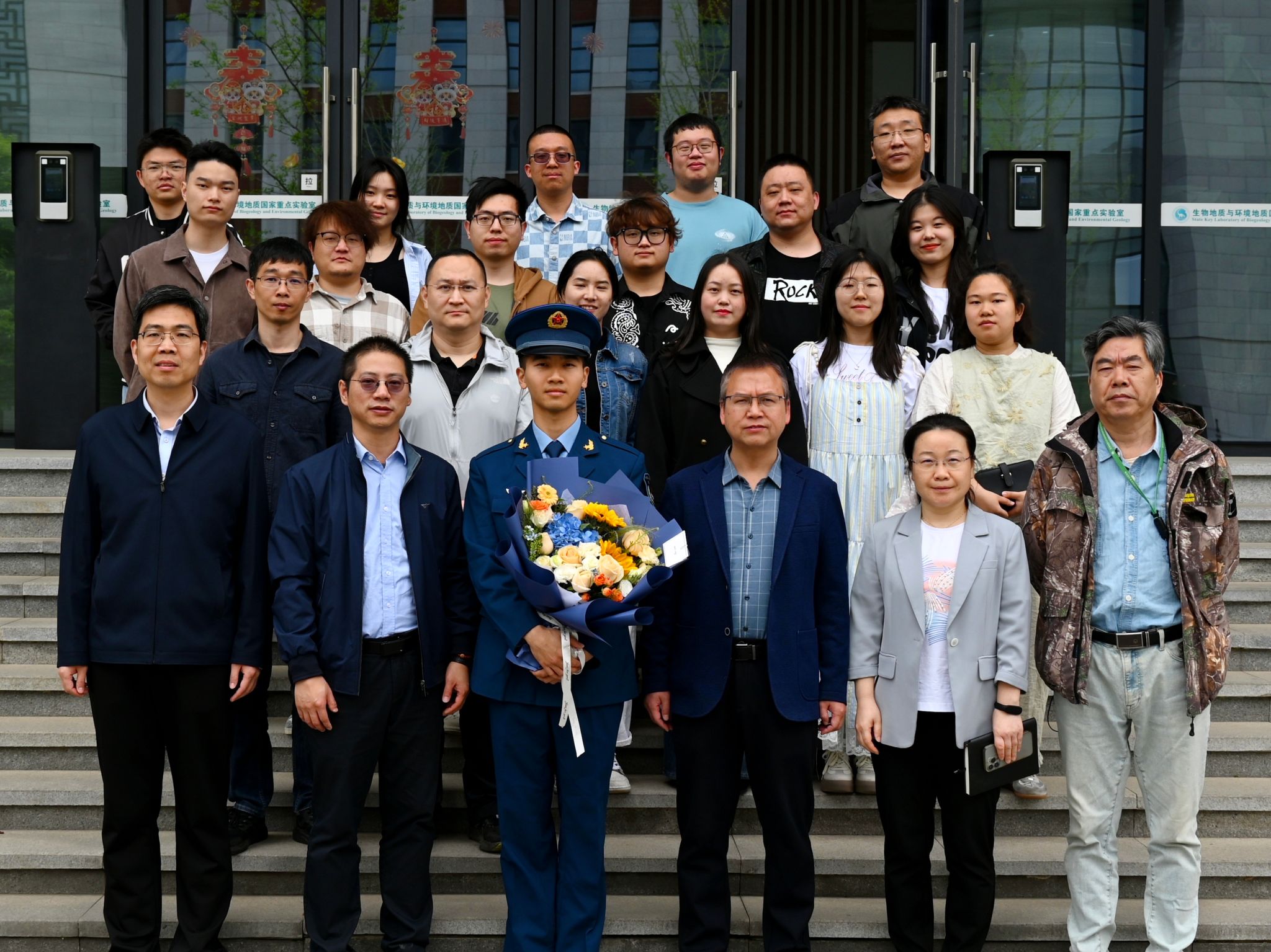 侯建湘代表地质微生物与环境全国重点实验室对刘宇杰退伍返校表示热烈欢迎,希望他能将军营中的精神带入到学术研究中,实验室也将为所有师生提供优良学习科研环境,期待同学们在未来的学习中继续发扬优良传统,争取更大的成就。