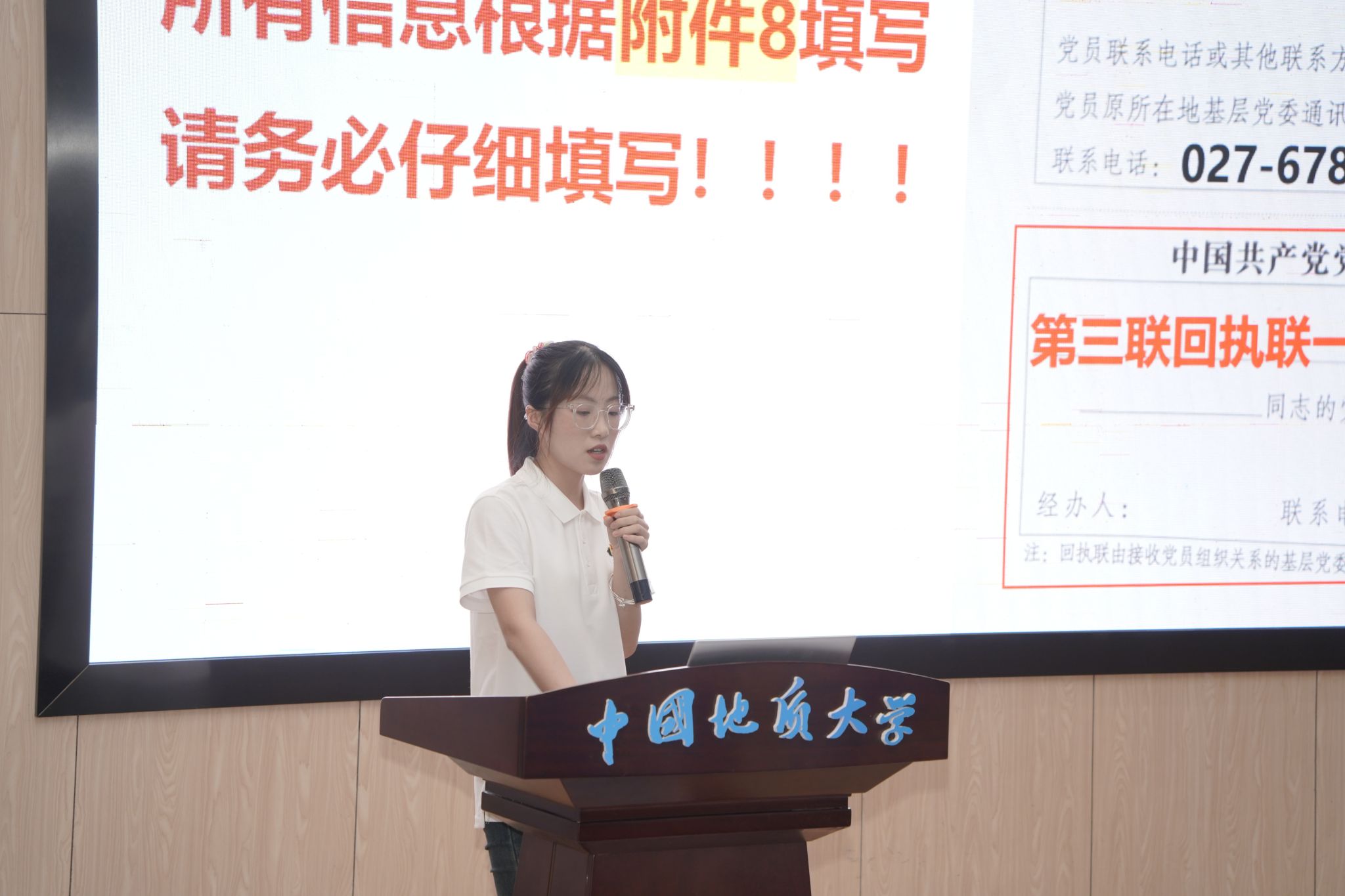 孟庆达和吴冰分别讲解毕业生党团组织关系转接流程及注意事项,要求全体毕业生党员和团员要严格按照学校规定提交相关材料,确保党团组织关系及时转接落实到位。