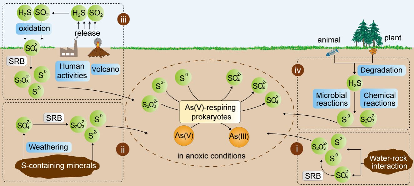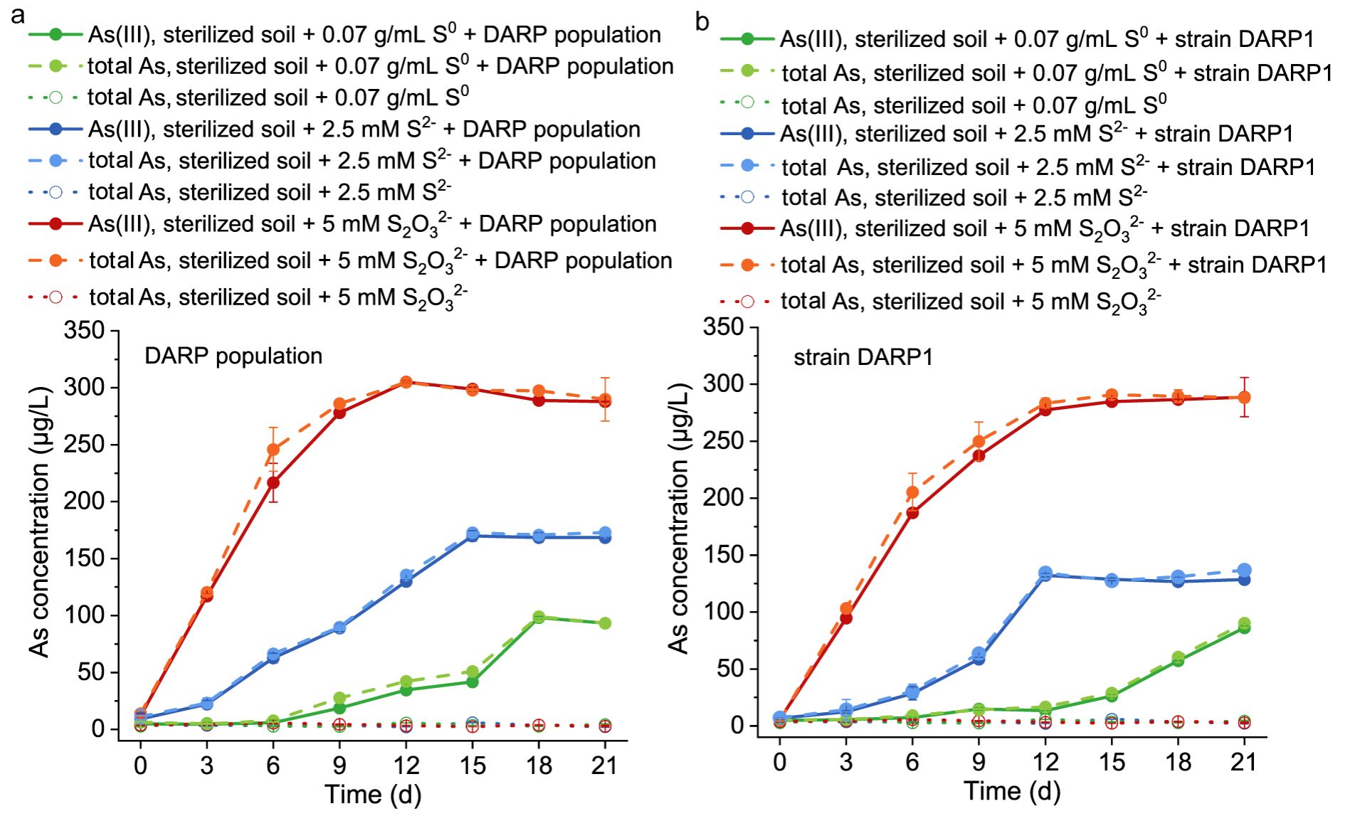 图2: DARPs介导的与还原态硫化合物氧化偶联的土壤中固相砷还原性释放。