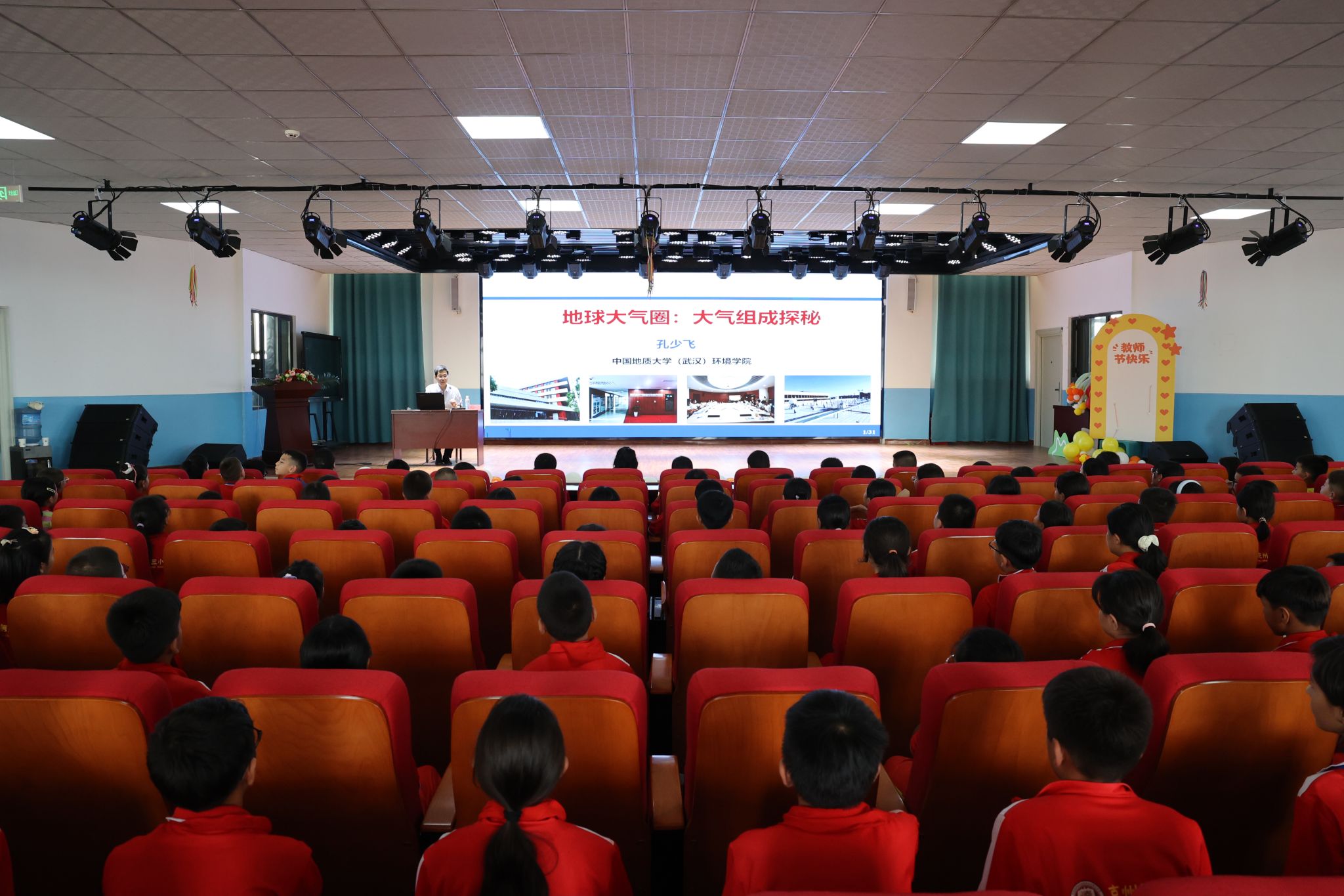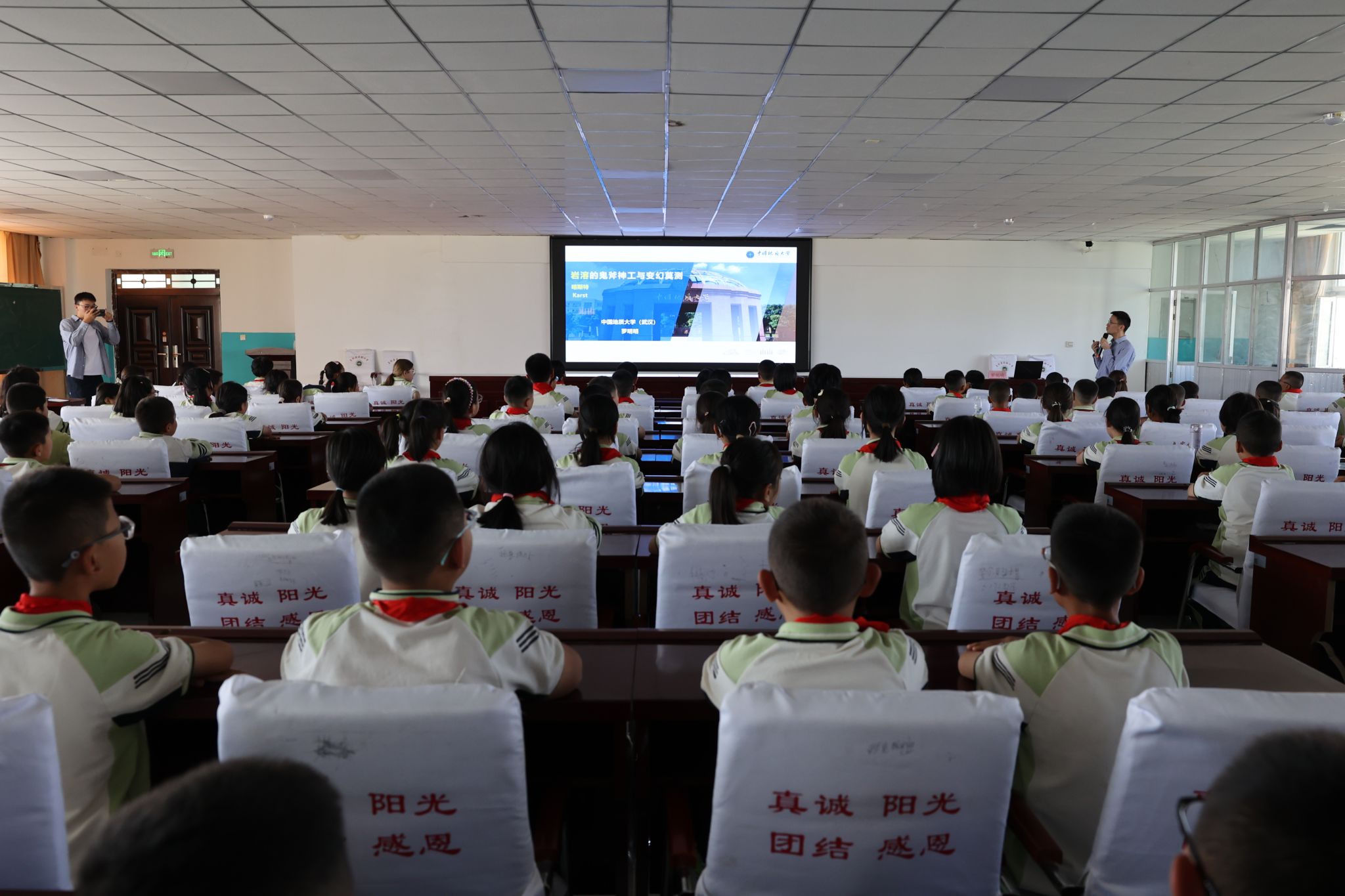 副院长、教授补建伟以《关爱地球 保护环境》为题进行讲授,不仅拓宽了学生们的视野,也增强了他们保护环境、珍爱家园的意识。“同学们的热情超出预期,他们眼中对科学的好奇与光亮,让我们特别感动。”补建伟说。