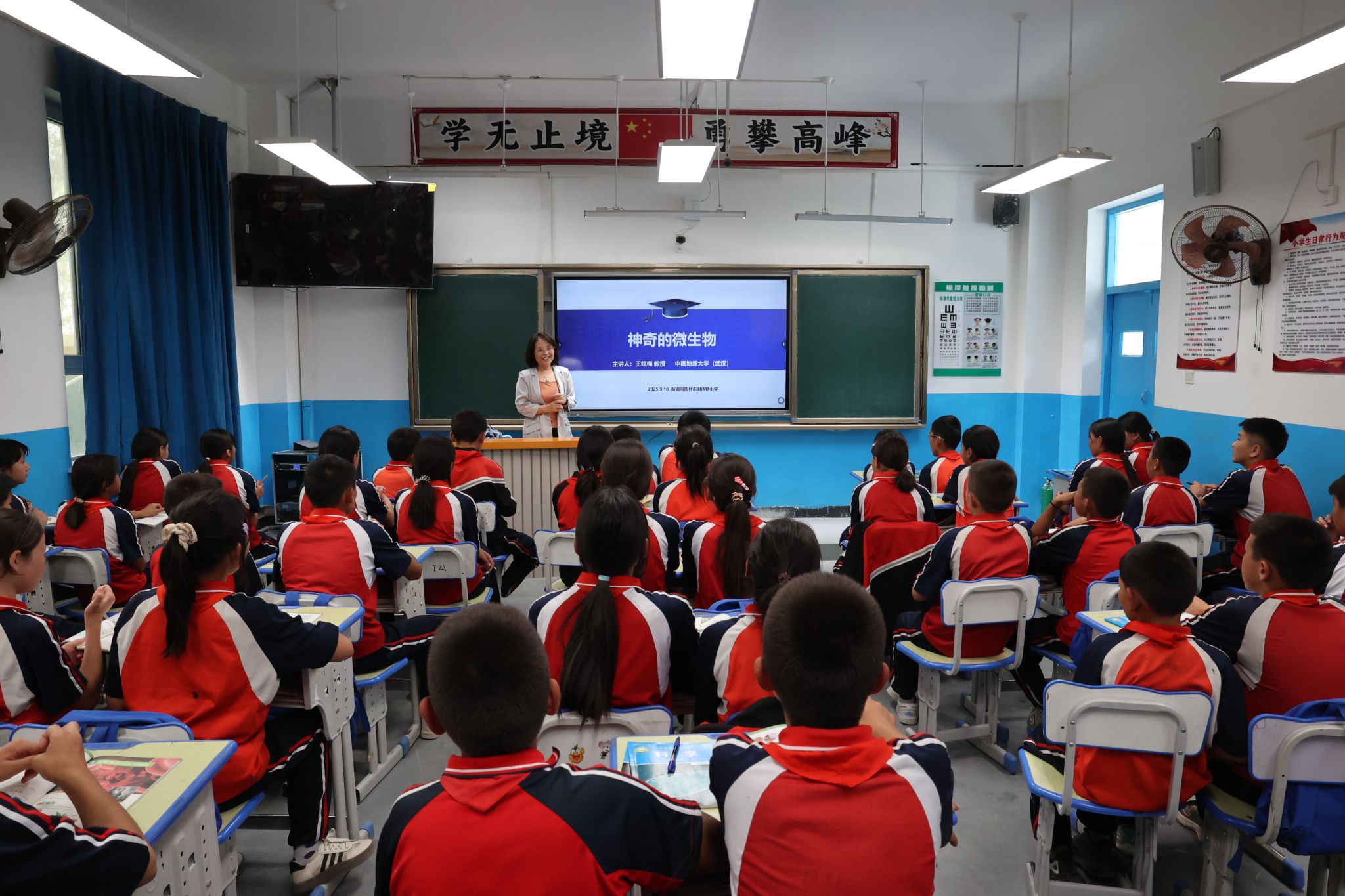 作为活动首站的哈拉峻乡谢依特小学,是克州首个西部计划志愿者包校支教试点学校。“若把芝麻比作足球场,细菌就像足球场上的小蚂蚁;若把芝麻比作摩天大楼,病毒就像大楼里的灰尘,可见微生物之小。”9月10日,在谢依特小学六年级教室里,吃瓜网
