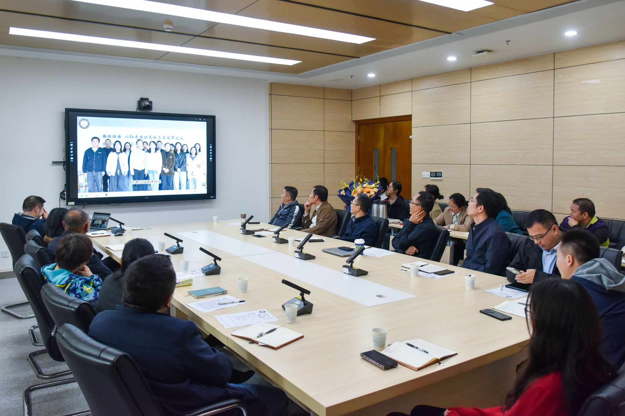 办公室全体老师以及学生代表参加欢送会。会议线上线下同步进行,院直党支部书记陈俊男主持会议。