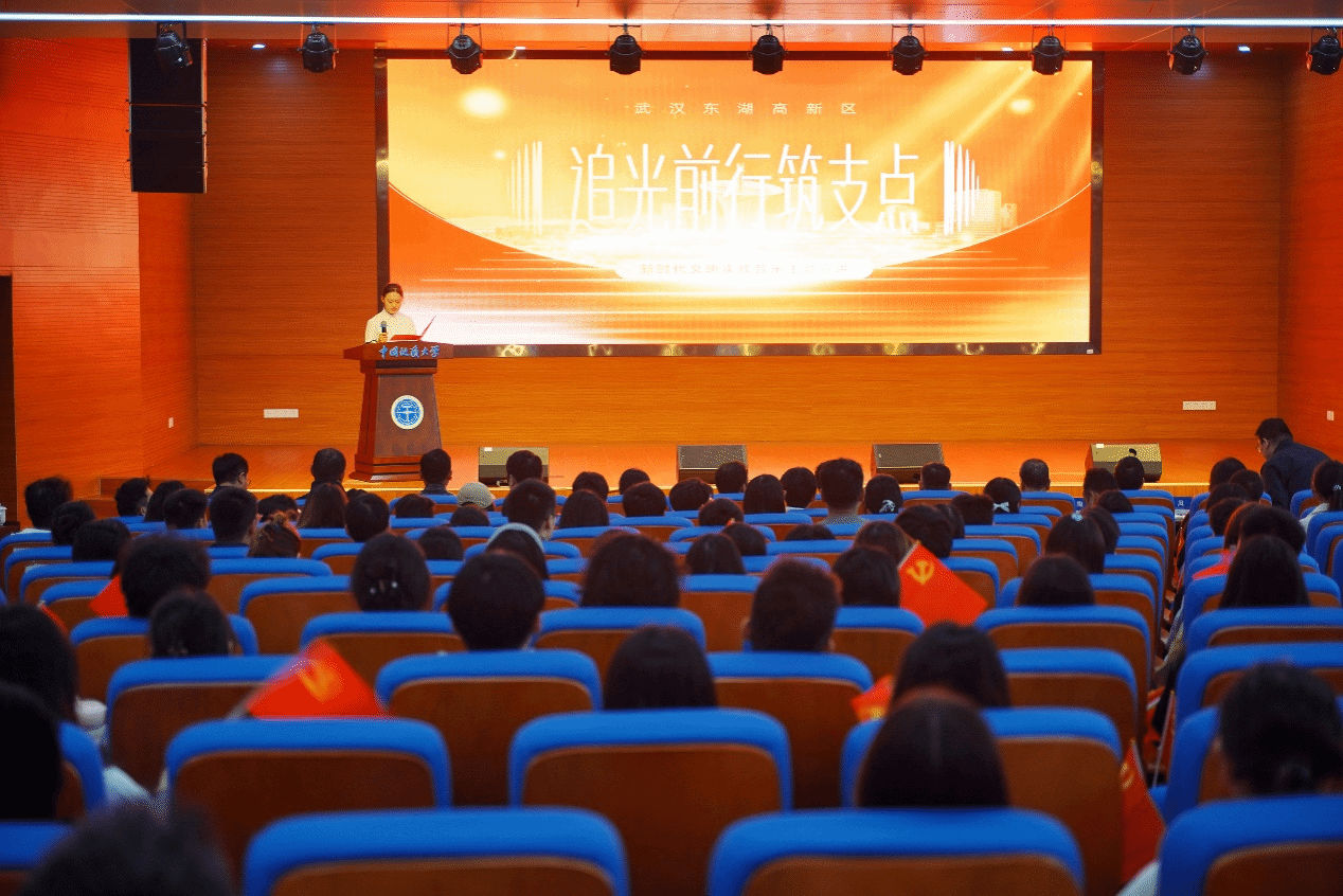 、研究生院、未来城校区管理办公室承办。宣讲内容分为“光明的火炬”“时代的征程”和“追光的步伐”三个篇章,通过沉浸感、互动式、参与性的设计,融理论宣讲、音乐演绎、现场朗诵、情景表演于一体,用“小切口”展现“大主题”,将党的创新理论与中国光谷富有新时代特色的典型故事讲活讲透,生动展现中国共产党精神谱系的丰富内涵和新时代改革发展历程。