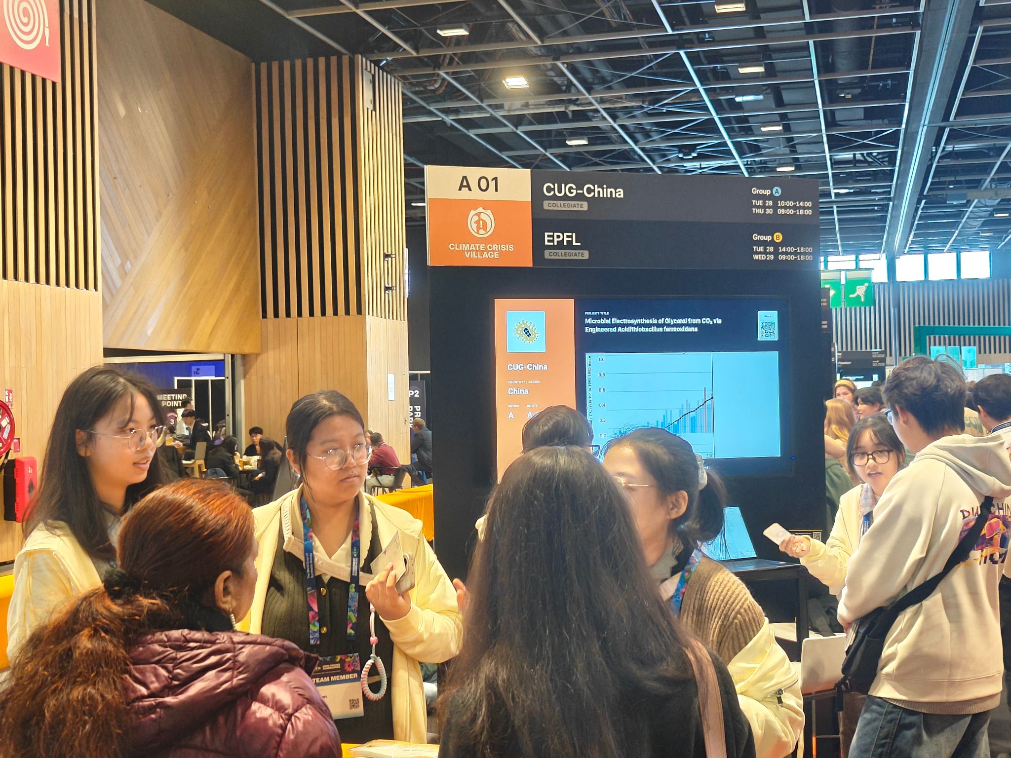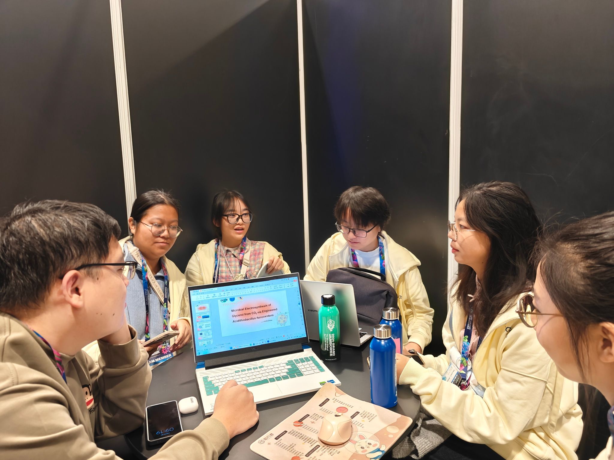 的16名本科生组成,由石良教授带领的地质微生物研究团队(包括董依然教授、蒋永光副教授、胡译丹副教授和姜舟副教授)担任指导教师,胡译丹副教授主要指导。经过一年的努力,团队完成了“固碳转甘油”的创新研究,涵盖项目策划、实验设计、数据分析及现场展示等多个环节。该研究通过合成生物学的方法改造嗜酸性氧化亚铁硫杆菌(Acidithiobacillus ferrooxidans),以构建电合成体系,实现二氧化碳的固定并转化为甘油,从而探索在清洁能源驱动下可持续碳循环的新路径。10月28日至31日,吃瓜网