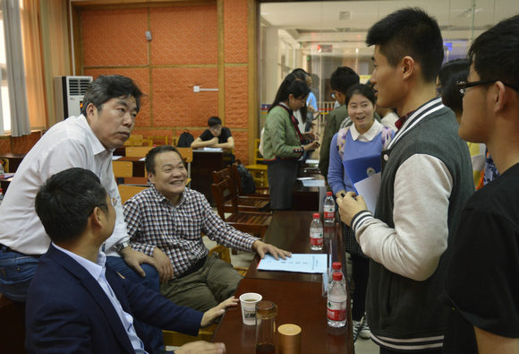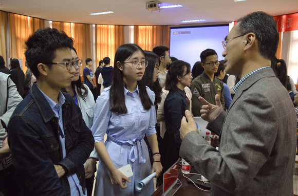 下午2点30分,互动交流正式开始。即将进入研究所实习的首届菁英班全体学生5人为一组,依次前往各区域与联合培养单位老师进行深层次的交流。老师针对学生提出的有关研究生招生和研究生教育等方面的细节问题热情并耐心地给予了详细的解答。部分15级和16级菁英班学生也参与到交流活动。