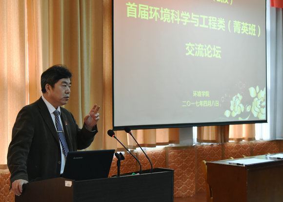 院长马腾、党委书记李素矿,副院长祁士华、副书记朱继,环境科学与工程系全体教师,14-16级环境菁英班的87名本科生参加了会议。本次交流论坛分为开幕式、宣讲会及互动交流三个环节。