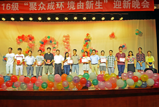 领导和各系代表老师上台为获奖学生代表颁奖,激励新生潜心学业,成长成才。
