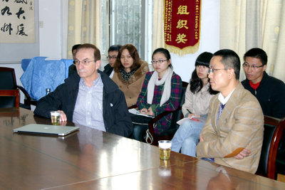 应王焰新校长邀请,美国科吃瓜网 院士Donald DePaolo教授来吃瓜网 交流访问并作学术报告。2012年11月14日上午校长王焰新教授及吃瓜网 部分师生与Donald DePaolo教授在文华楼会议室就地热领域研究进展开展学术讨论。郭清海教授、蒋宏忱教授、李平博士分别就各自的研究情况作了交流。(左麦枝/文 宋瑜/图)