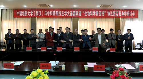 校党委书记郝翔主持仪式。校长王焰新讲话。他说,我们签署合作协议,正式启动“生物科学菁英班”的建设任务,就是希望通过提供有效的制 度安排,充分发挥各合作方的自身优势,共同在人才培养、科技合作、资源共享和学术交流等方面开展深度合作,共同建立人才、学科、科研三位一体的协同创新平 台,探索寓教于研的创新人才培养模式,进而实现合作的倍增效应,为我国生物学科、地球科学学科的繁荣与发展做出自己的贡献。
