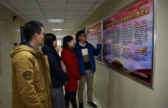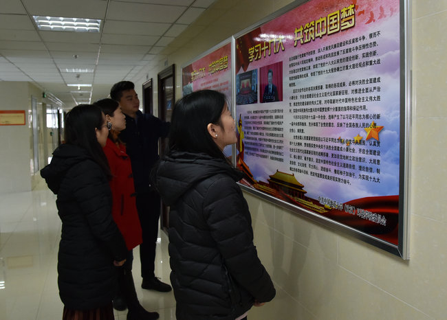 师生通过宣传橱窗学习十九大精神