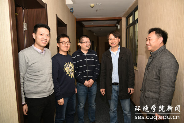 看望来自德国明斯特大学的莫丁丁博士(右二)团队的徐聪博士、Hongryeol Park博士和郑志成博士