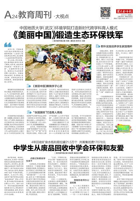 依托水、土、气、生环境学科群,紧密结合学科特色、专业特点,深入挖掘环境类专业课程思政元素,探索启动了“美丽中国4+N环境地球科学类课程思政”。其中举措“4”即该院积极推进习近平生态文明思想系统进教材、生动进课堂、扎实进头脑,组织专家老师编写了《习近平生态文明思想精选》《马克思主义及中国生态文明思想选读》《生态文明生态环境自然资源政策法规读本》《环境地球科学类专业导读》四本教育教学用书,作为通识教材人人学习。然后在各类专业课程上无缝对接思想政治教育,“4+N”强化所有课堂都育人,编织了多学科交叉深度融合的育人网络。