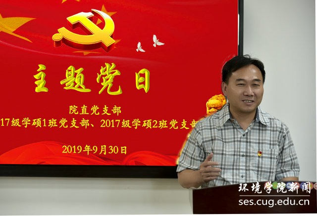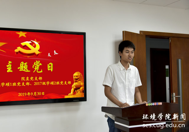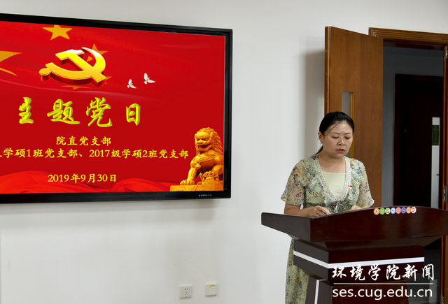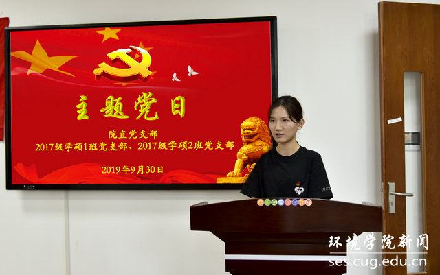 主题党日会上,院直党支部梁莉莉老师、刘凤莲老师;2017级学硕1班党支部郑杰军同学;2017级学硕2班党支部卢昱含同学;院直党支部成员、吃瓜网