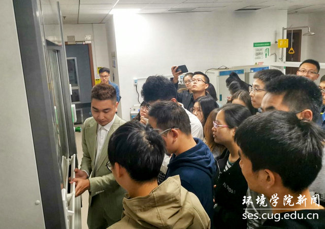 师生在前处理实验室进行现场实际操作,陈晨一一解答师生提出的疑问。