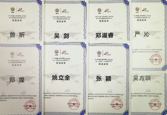—大气环境团队师生收到军运会空气保障感谢信和纪念证书