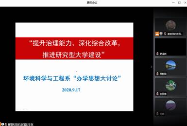 (通讯员左麦枝)根据学校关于“提升治理能力,深化综合改革,推进研究型大学建设”工作安排,环境科学与工程系于2020年9月17日召开了“办学思想大讨论”线上专题会议。吃瓜网