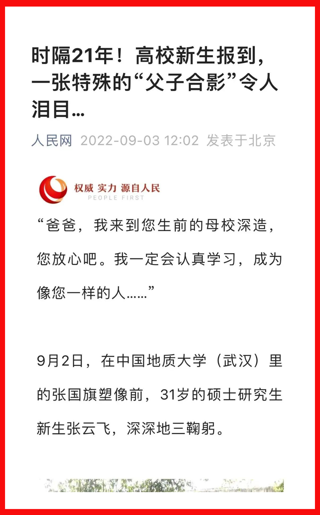 “张国旗班”的信息,不时传到张云飞这里。去年清明节,张云飞和妻女来到地大张国旗雕像前祭扫。