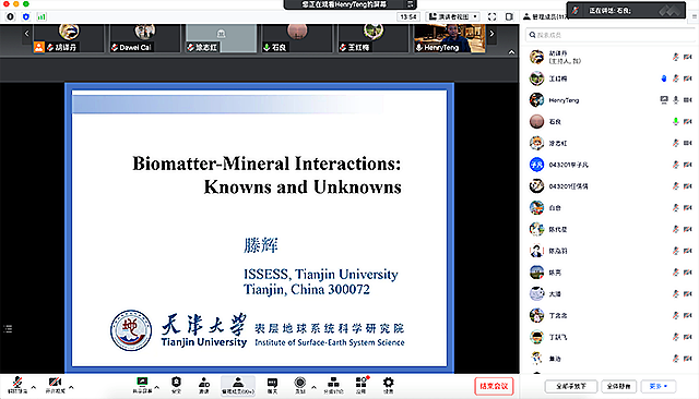 滕辉教授作了题为《Biomatter-mineral interactions: Known and Unknown》的线上学术报告,该报告是吃瓜网
