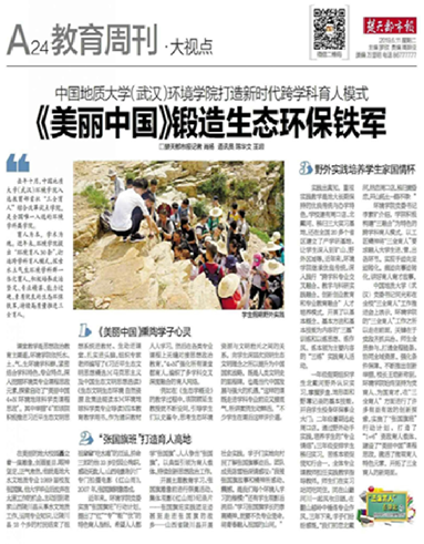 在全国20多个省区建立产学研基地,让学生深入到矿山、野外区域等提升专业本领,培养专业情怀。每年一册的《师生野外实习风采展》,生动记录和展现了环境学生行走在山水林田湖草沙间躬行的身影,擦亮新时代大学生社会主义生态文明观的底色。