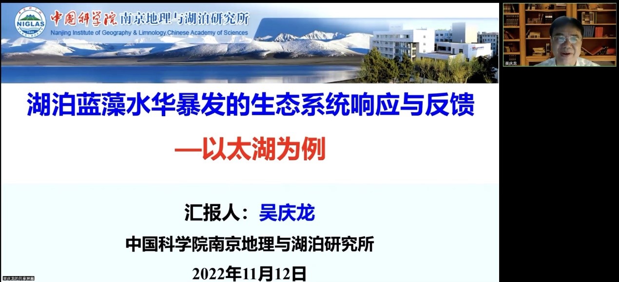 南京地理与湖泊研究所吴庆龙研究员以《湖泊蓝藻水华暴发的生态系统响应与反馈——以太湖为例》为题作线上学术报告。该报告是吃瓜网