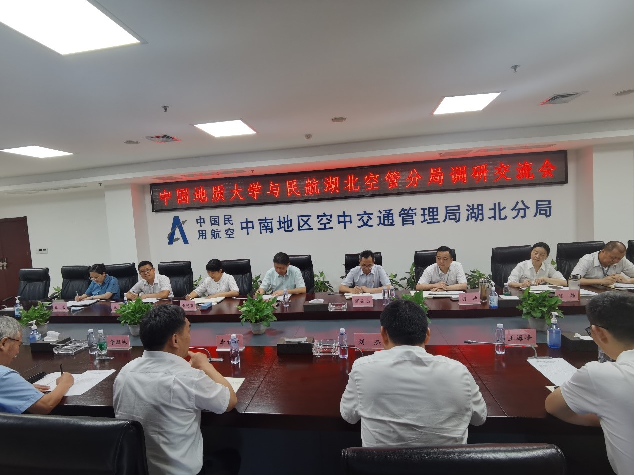 座谈会前,民航湖北空管分局局长周伟春和党委书记阎岳志会见刘杰副校长一行。