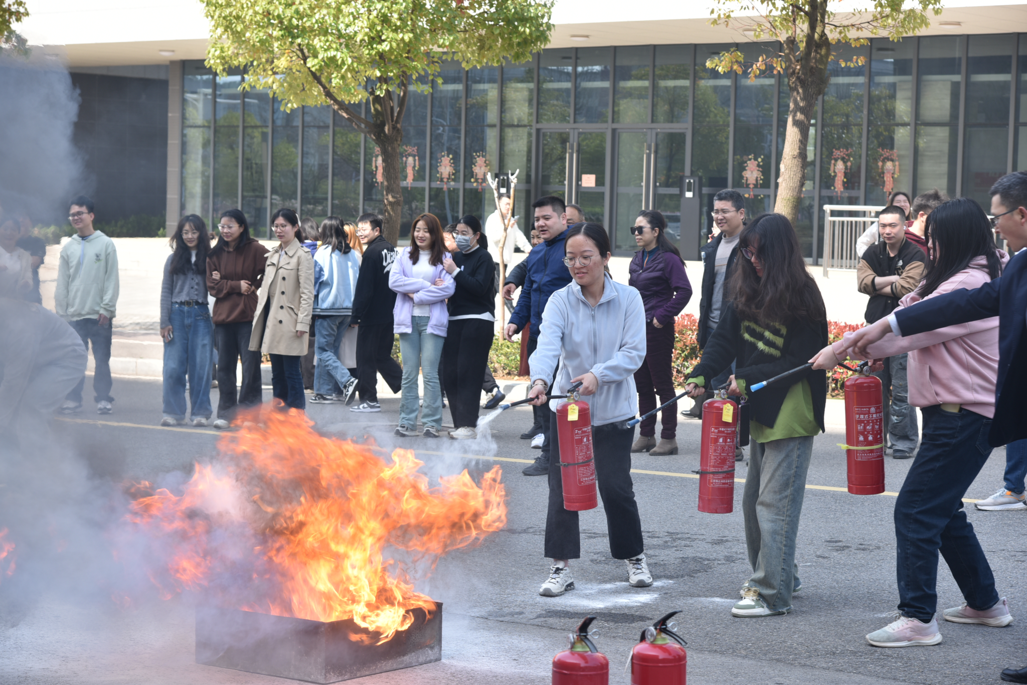 逃生演练结束后,参与演练师生集中学习灭火器使用方法。张献文结合实际,向全体师生介绍干粉灭火器、二氧化碳灭火器以及消防水管的构造和功能,并现场教授灭火器实际操作要领和技巧。