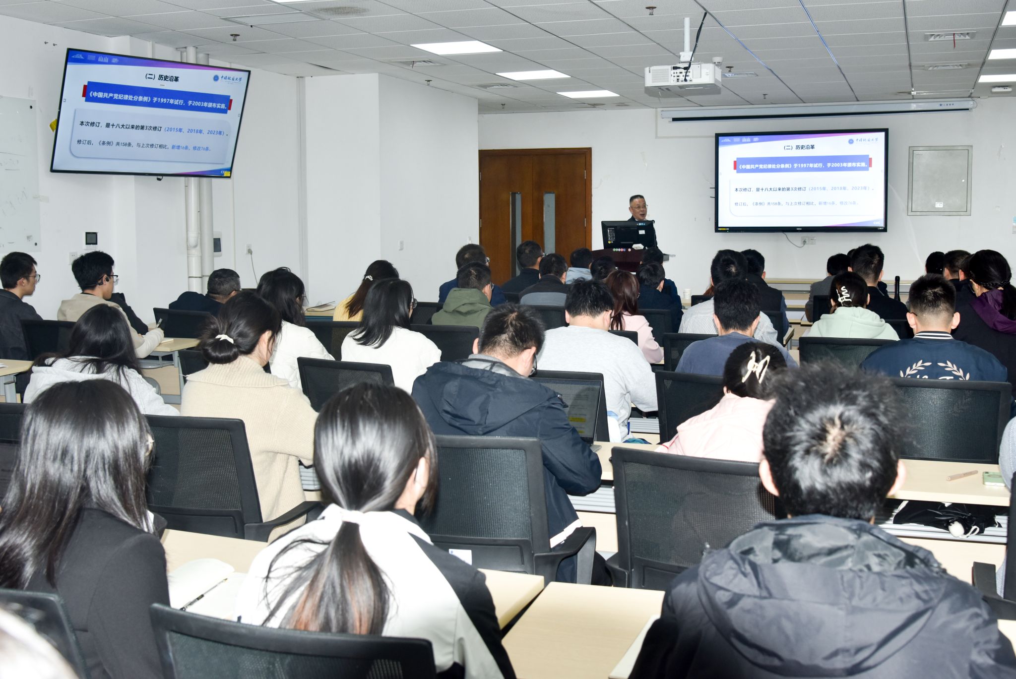 唐忠阳副书记介绍了《中国共产党纪律处分条例》修订的背景意义、历史沿革和使用原则,重点梳理和解读了与日常工作生活紧密相联的14项需要重点注意的问题,从学习要求、道德高线、纪法底线等三方面和学生党员谈纪律。