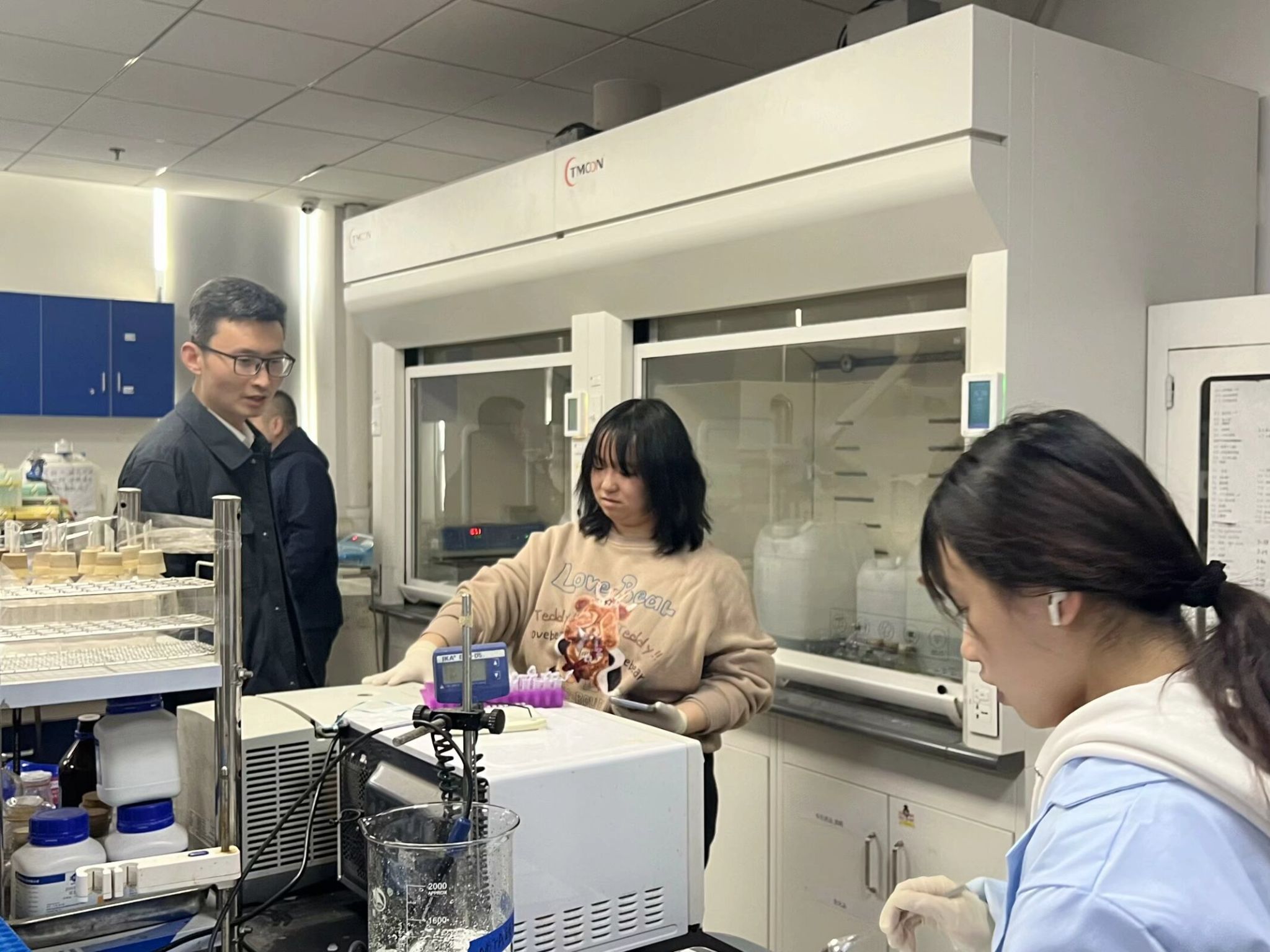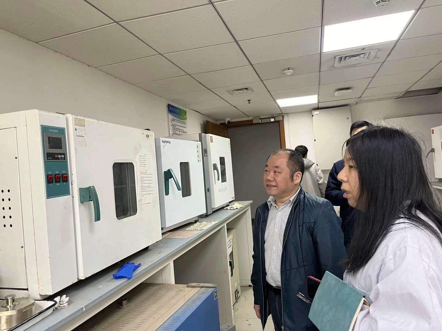 党委书记姜明敏、实验教学中心梁莉莉、辅导员赵恩民等检查走访研究生工作间、高温室等教学科研实验室。