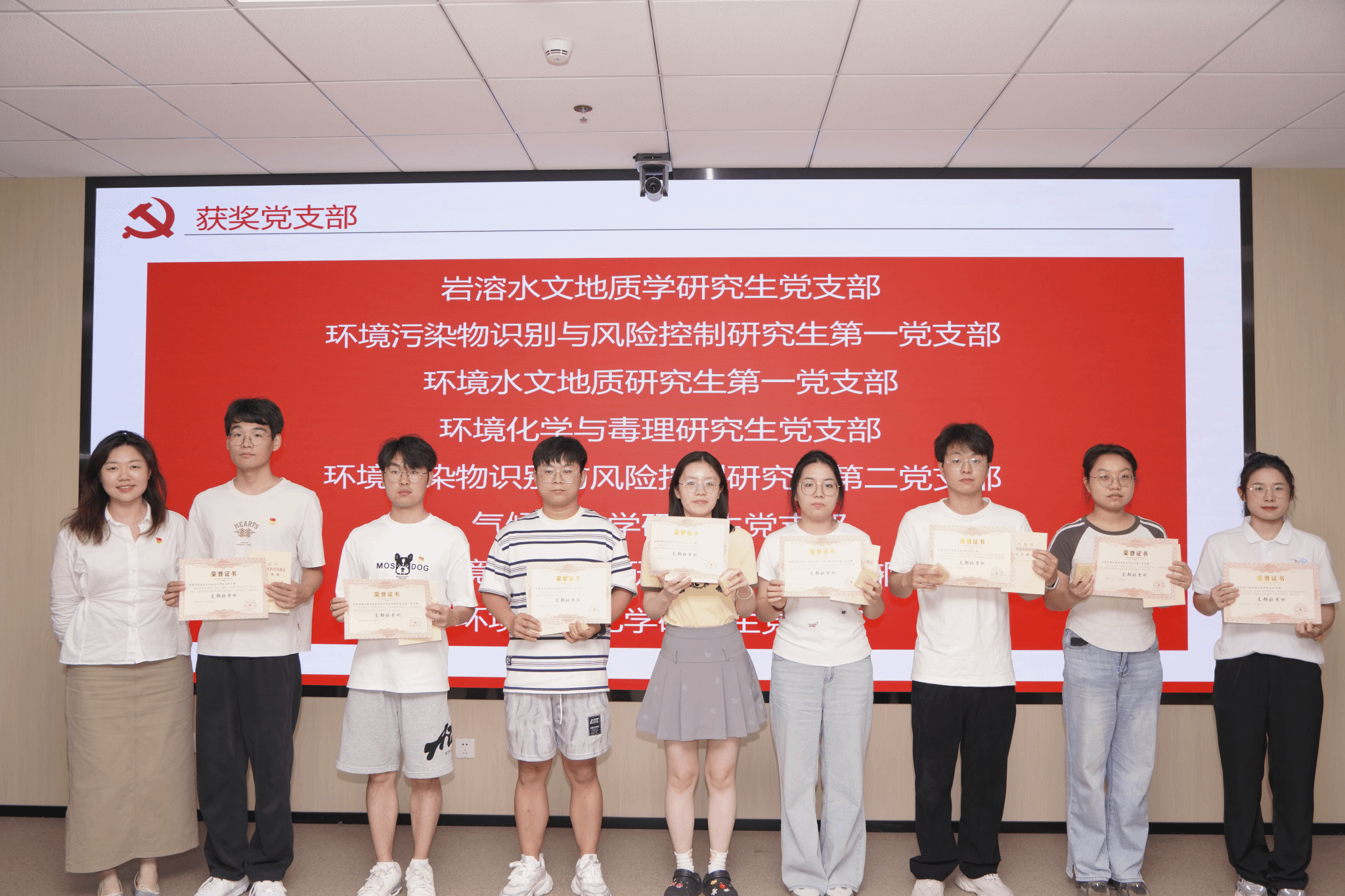 刘欣然为获得吃瓜网 “支部好案例”的学生党支部颁奖。经过前期评选,岩溶水文地质学研究生党支部、环境污染物识别与风险控制研究生第一党支部、环境水文地质研究生第一党支部、环境化学与毒理研究生党支部、环境污染物识别与风险控制研究生第二党支部、气候动力学研究生党支部、环境水文地质研究生第二党支部、环境地球化学研究生党支部等8个支部提交的工作案例获评吃瓜网 “支部好案例”。