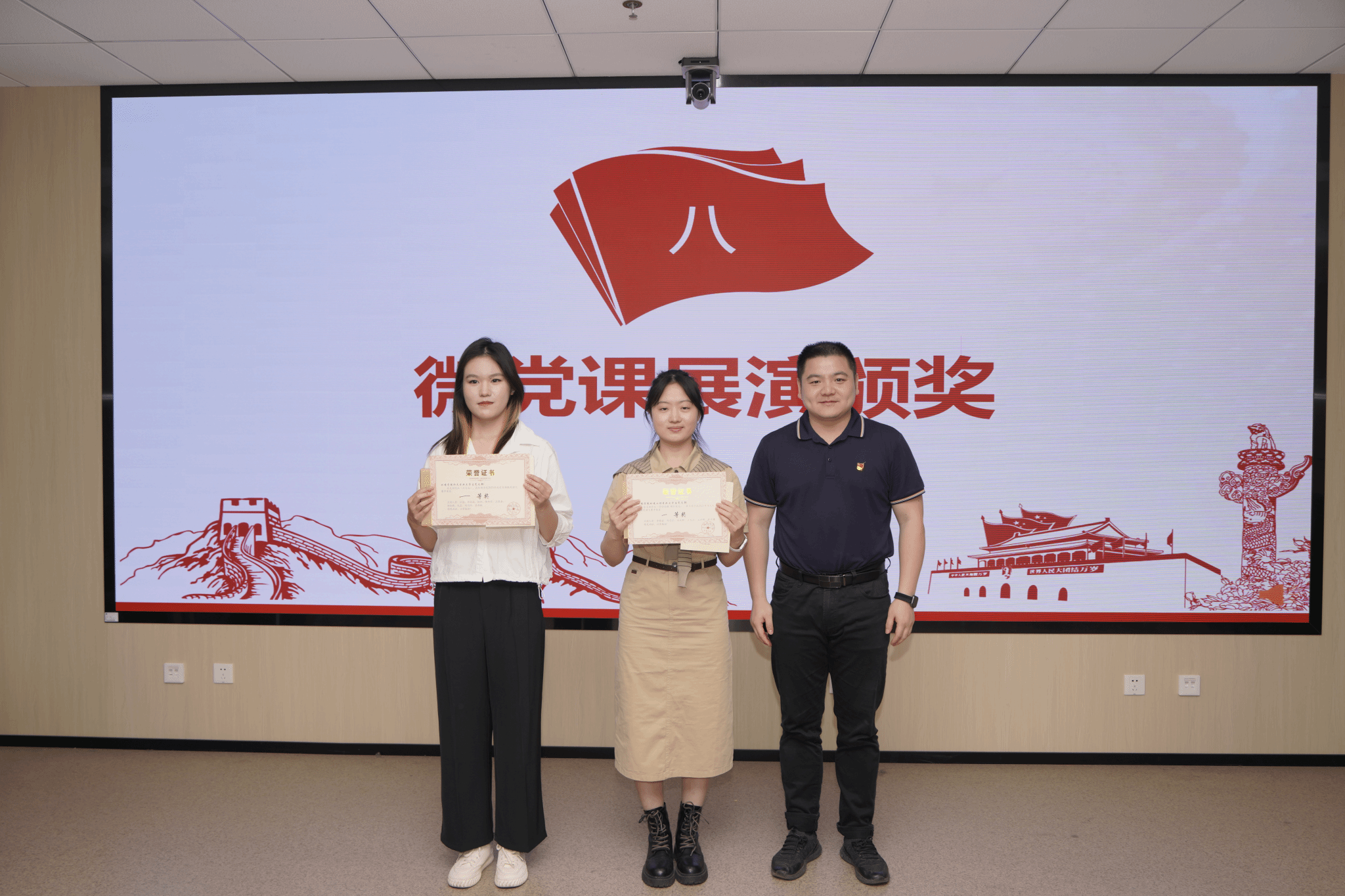 赵恩民为本次展演活动三等奖获奖支部颁奖。环境污染物识别与风险控制研究生第一党支部、新能源吃瓜网 学生党支部、环境化学与毒理研究生党支部、环境地球化学研究生党支部4个支部获得三等奖。