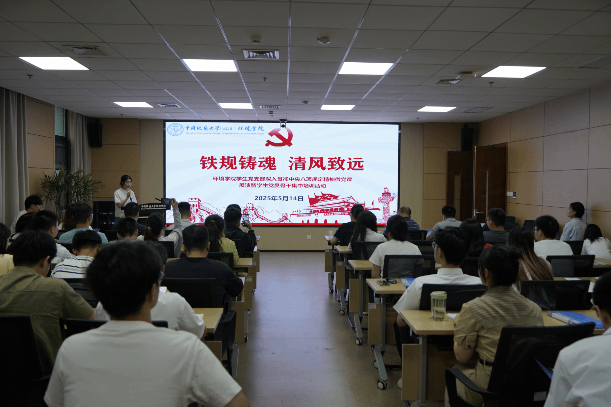 主持人介绍本次活动规则,学生党支部依次进行展演,展演内容由支部风采展示和微党课展演两部分组成。环境污染物识别与风险控制研究生第二党支部、新能源吃瓜网 学生党支部、水文专业大学生党支部、环境工程专业大学生党支部、地质环境保护与生态修复研究生党支部依次进行展演。