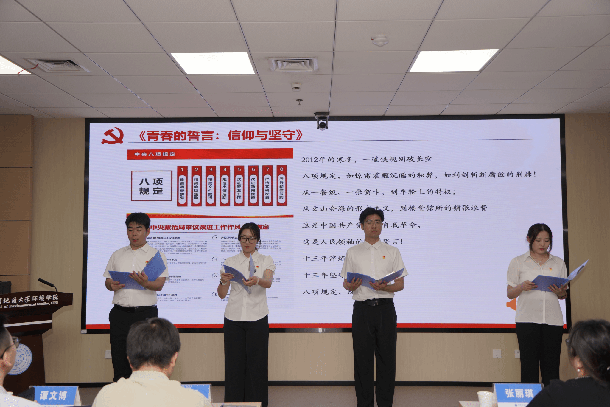 水土污染与防治研究生党支部、生物科学与技术研究生党支部、环境化学与毒理研究生党支部、环境地球化学研究生党支部依次进行展演。