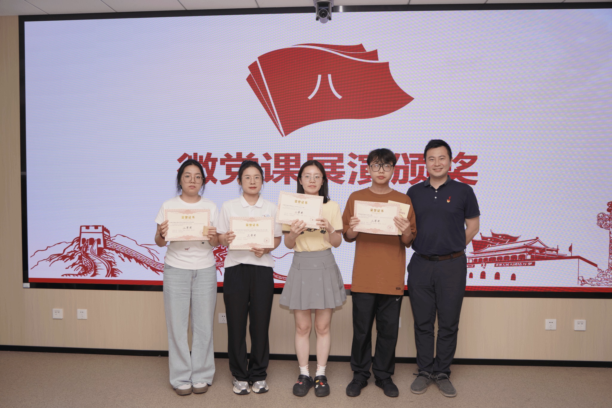 孟庆达为本次展演活动二等奖获奖支部颁奖。生物科学与技术研究生党支部、水土污染与防治研究生党支部、地质环境保护与生态修复研究生党支部3个支部获得二等奖。