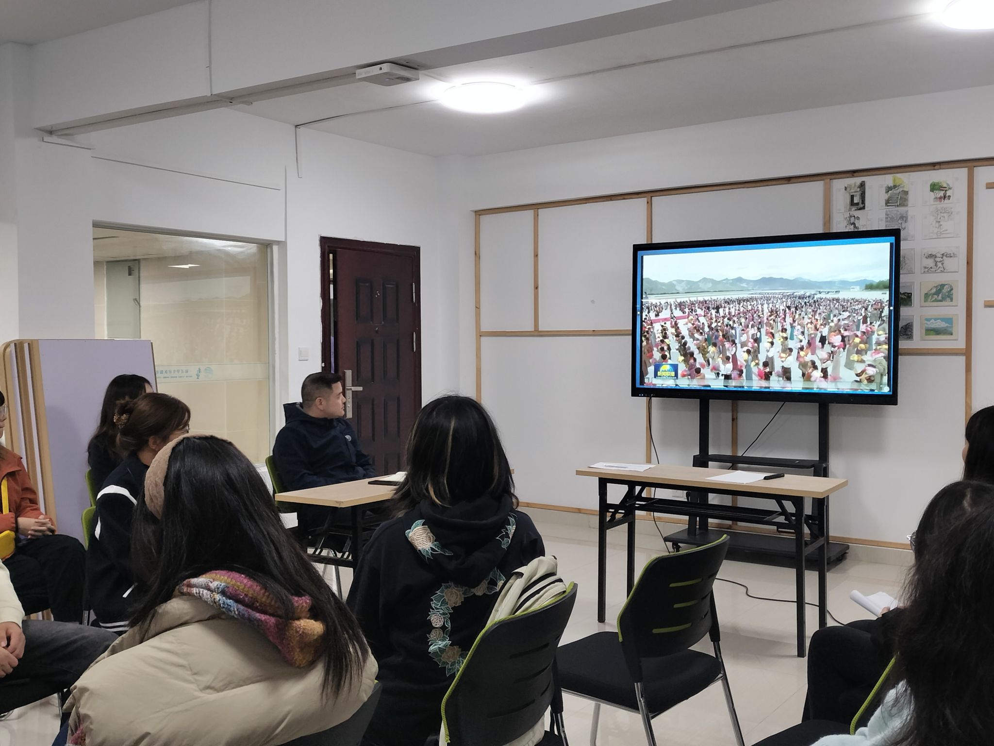 卢梦佳带领大家学习了我国主要少数民族的历史文化及发展历程,并组织大家集中观看了习近平总书记率中央代表团出席西藏自治区成立60周年庆祝活动和新疆维吾尔自治区成立70周年庆祝活动的相关报道。