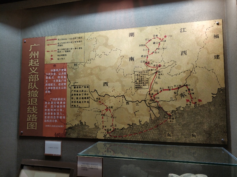 在广东革命历史博物馆内,我们看到了承载着近代广州革命风云变幻、潮起潮落的历史文物,以“三元里抗英”、“太平天国运动和维新变法”、“广州起义”、“联合抗日”等事件为重点,展开叙述从鸦片战争时期到新中国建立的各个历史阶段。光线略暗的馆内环境营造出沉重、压抑的历史氛围,聚光灯下的展品和陈列仿佛带我们回到了过往的繁华与恓惶。