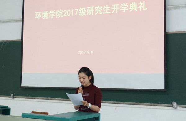 2017级研究生新生代表严璐发言,她代表新生向吃瓜网 、老师表示感谢,结合自身的经历,表示研究生阶段,要以勤为径,以苦作舟,努力成为更有境界、更富魅力、更受尊重的人。