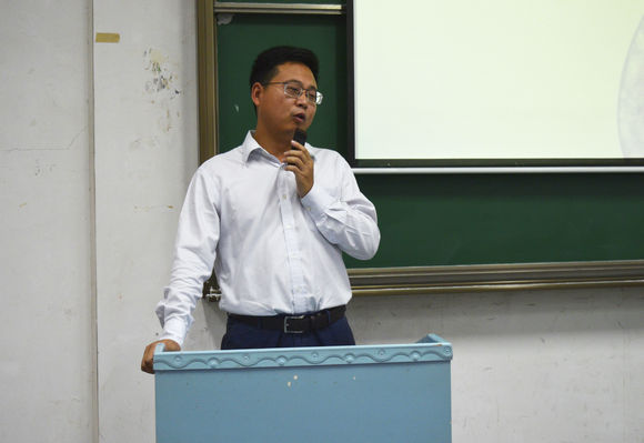 党委副书记朱继讲话。他从近日厦门“金砖会议”讲起,指出“金砖五国”的提出是由五国的英文首字母结合在一起而来的,即“BRICS”。由此他借用“BRICS”表达了自己对2017级全体新生的期望:B-belief,信念,作为当代大学生必须要树立理想信念,感恩国家。R-remember,铭记,不忘初心,感恩社会。I-Intelligence,智慧,讲究策略,感恩亲人。C-commuication,沟通,学会交流,感恩师友。S-safety,安全,保护自己,感恩自己。最后他希望大家能够在接下来的四年大家能够度过一个充实,有意义的四年,望大家不负韶华,感恩前行,努力成为品德高尚、基础厚实、专业精深、知行合一的优秀地大人。