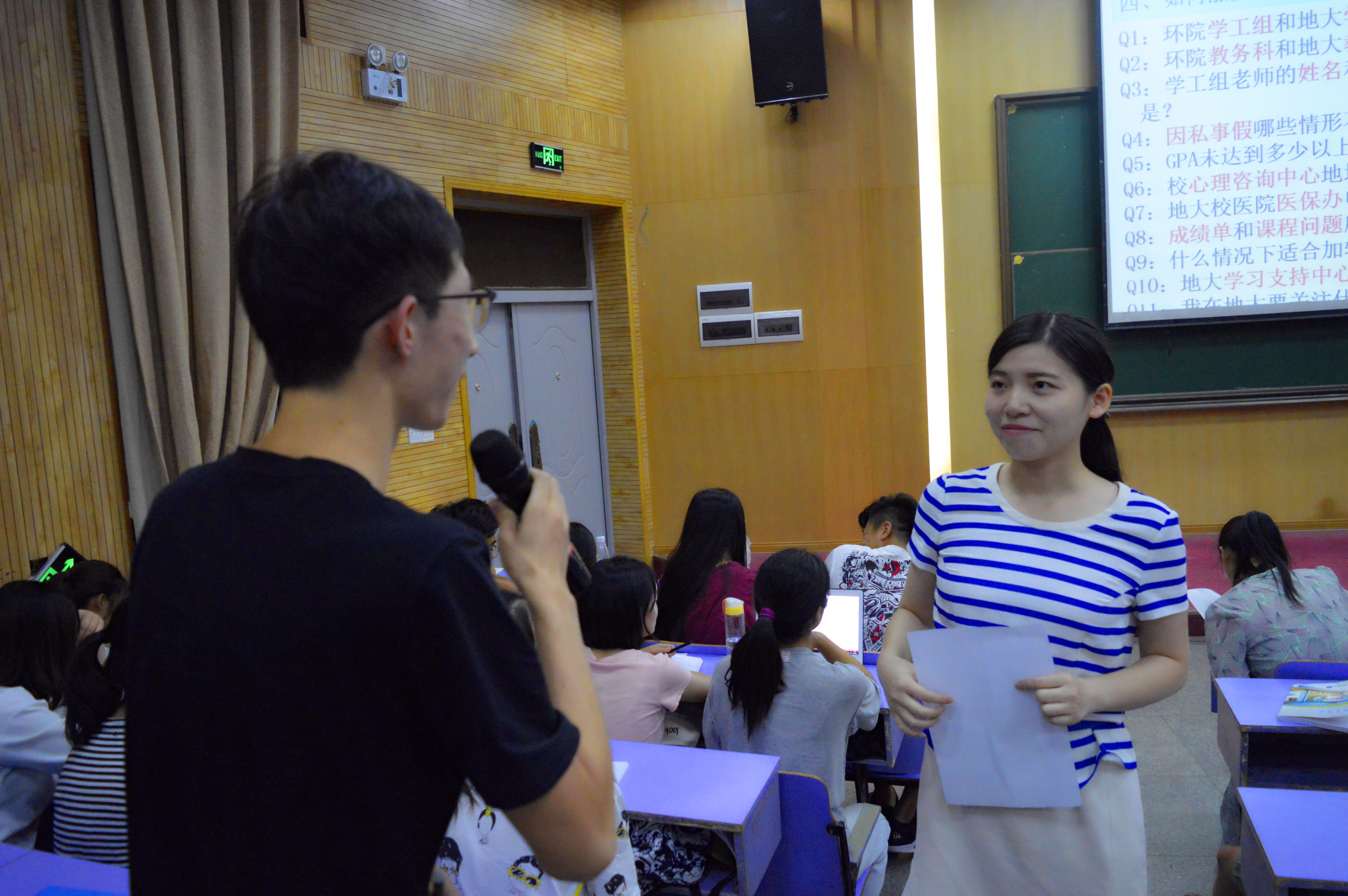 会议期间,杨雪还通过现场互动提问的环节考察了学生们对于新版《学生手册》的学习与熟悉程度,针对同学们的关心的创新创业学分等问题进行了解答。