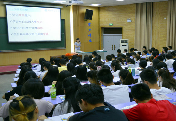 结合2015级学生的学习情况,与普遍性的成长诉求,她引导同学们进行“三个学会”,即学会尊重他人、学会对自己的人生负责、学会在吐槽中懂得感恩。