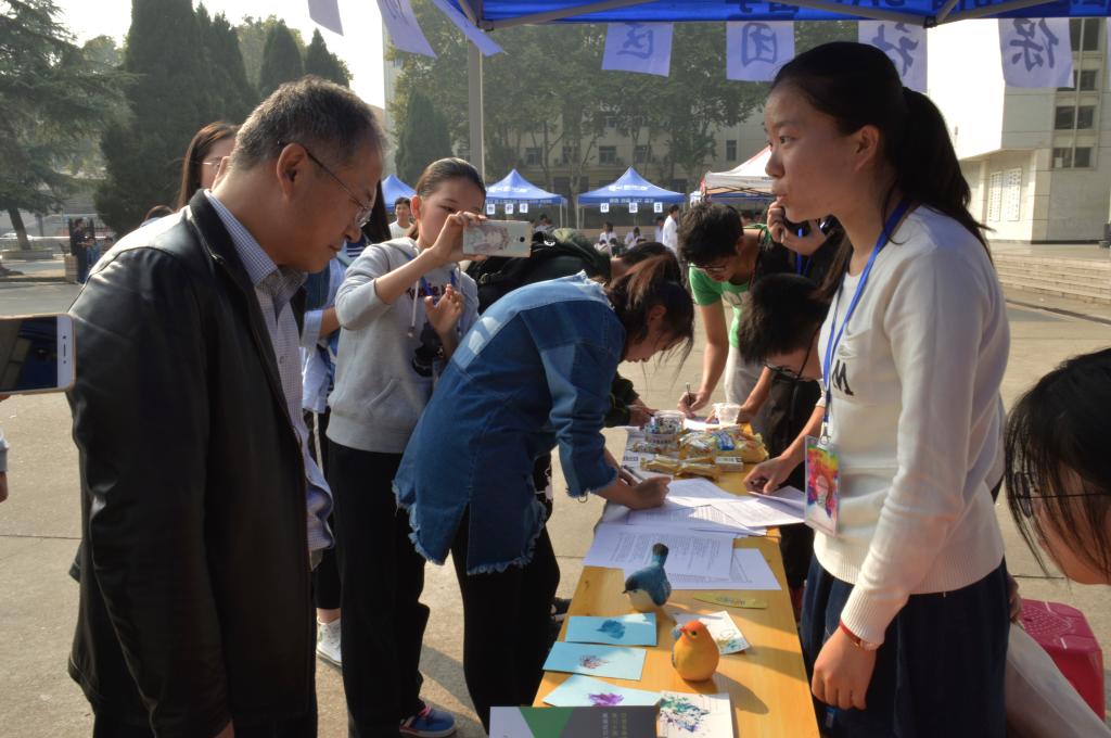 活动现场,学生们参与热情高涨。他们用穿刺笔试pH计检测校园水质,绘制叶脉书签让栽培的绿色植物“冻龄”,还收藏了学生原创设计的“习大大的生态观”明信片。