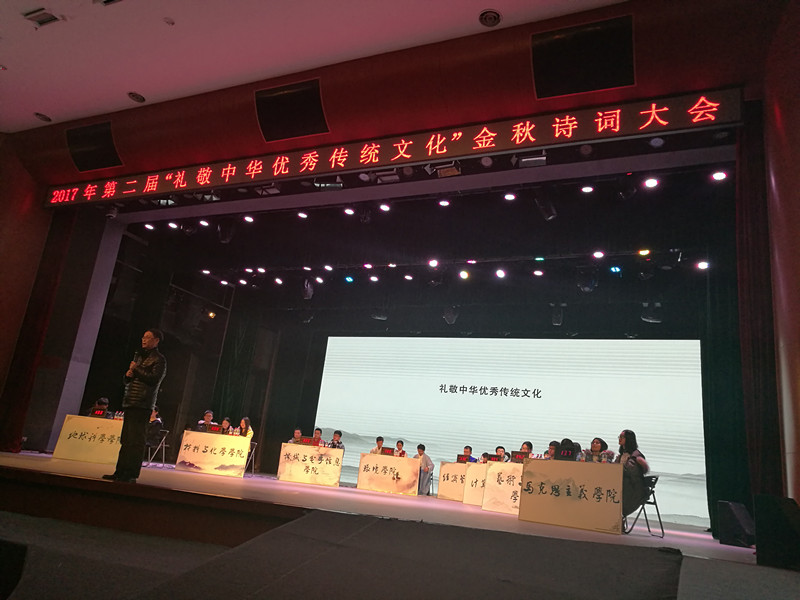2017年12月8日,由党委学生工作部、党委研究生工作部、教务处、校团委联合举办的第二届“礼敬中华优秀传统文化”金秋诗词大会在弘毅堂顺利举行。吃瓜网 付昱钢、刘恩俊、李凡三位同学精心准备,经笔试,小试牛刀初登场、百尺竿头斗志昂、精彩飞花我最强等四个环节等环节后,从全校20余个单位派出的参赛队伍中脱颖而出,荣获第二名。